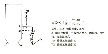 注:產(chǎn)品訂貨時,如用戶提出預拉伸由制造廠家完成,則產(chǎn)品的供貨長度L+△X。如由用戶完成,可在產(chǎn)品安裝之前,通過產(chǎn)品的雙頭螺柱和螺母使二組波紋管的長度各增加½△X。