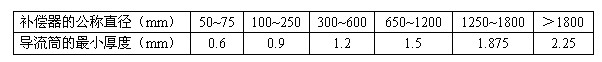 (1)在一般情況下,管道輸送氣體和蒸汽時,補償器導流保護筒的_小厚度應采用下表的經驗值: