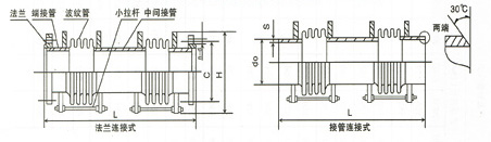 表示公稱通徑為500mm,工作壓力為0.6MPa,長度為1500mm,不銹鋼法蘭連接的小拉桿橫向波紋補償器。